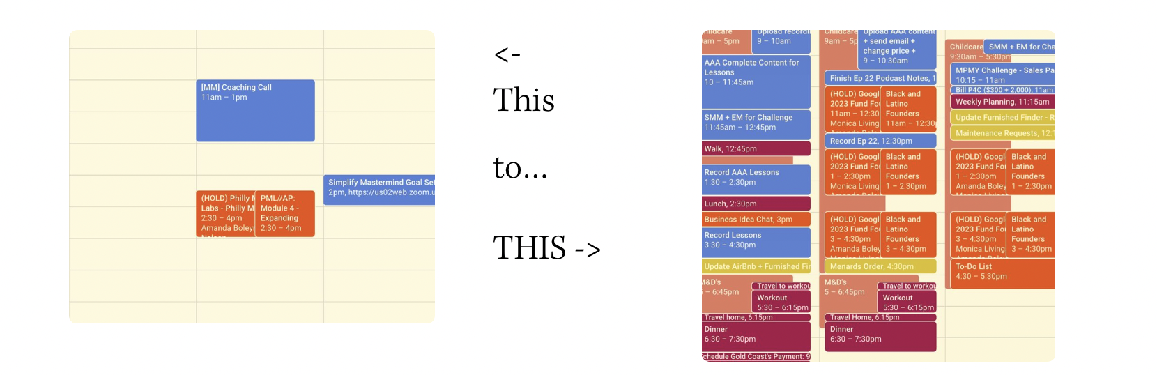 Go from having no clear plan and living in reactive mode to having a plan for exactly how you’re going to spend your hours and what results you want to achieve…